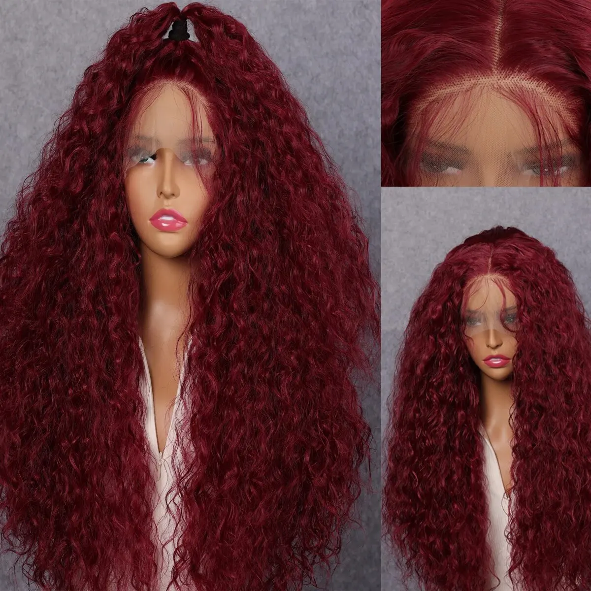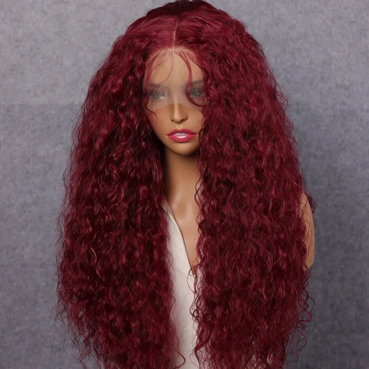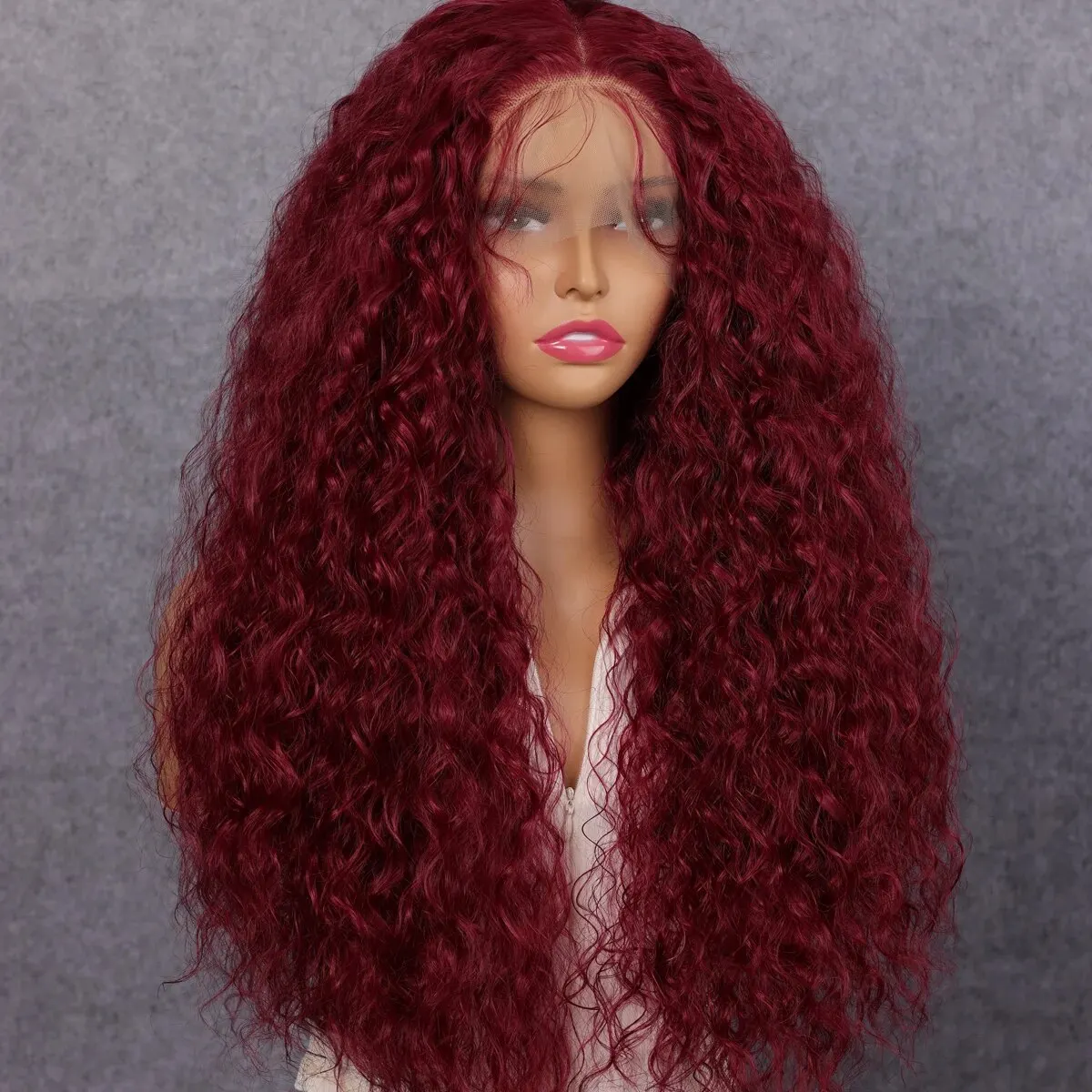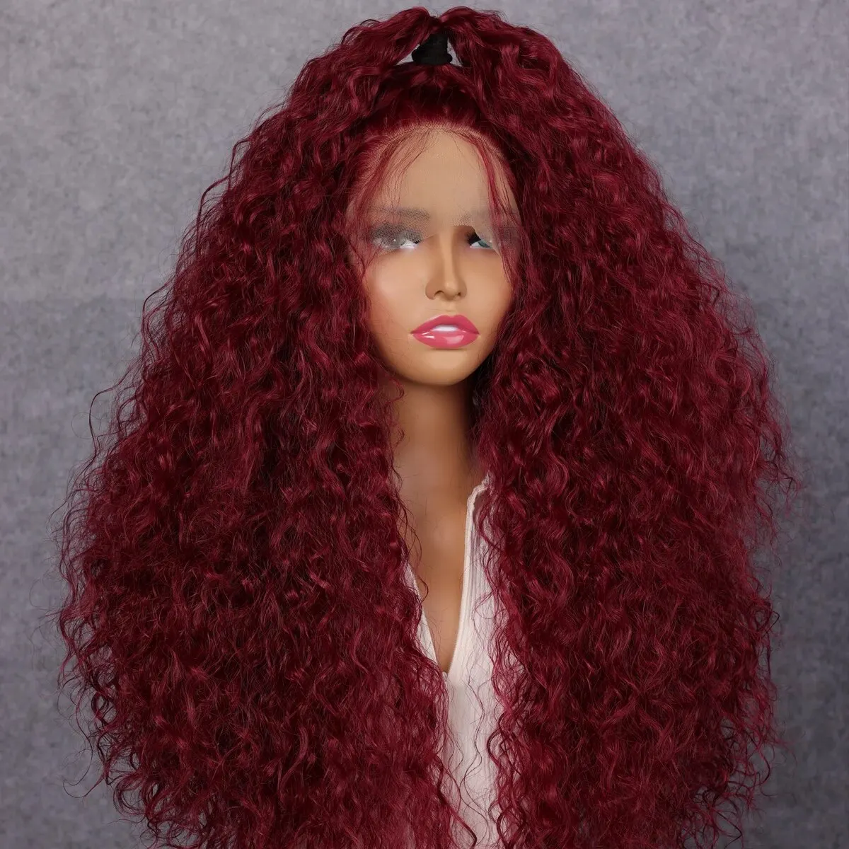 Soft Preplucked 99J Dark Red Color 26Inch 180Density Burgundy Lace Front Wig Synthetic Kinky Curly With Baby Hair Glueless