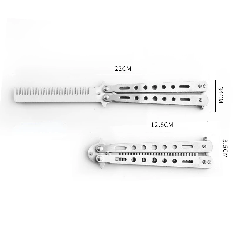 Stainless Steel Foldable Comb Practice Training Butterfly Knife Comb Beard Moustache Brushe Salon Hairdressing Styling Tool
