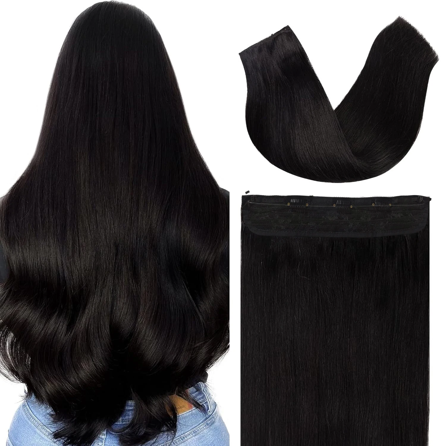Straight Natural Black #1 Hair Extensions with Invisible Secret Fish Line Real Human Hair 16-26 Inch 120g For Salon High Quality