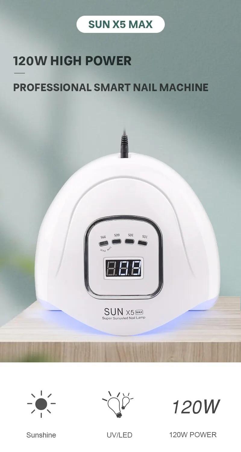 SUN X5 MAX intelligent phototherapy nail machine 120W high power, multi-level timing, painless mode, 45 LED/UV dual light source lamp beads