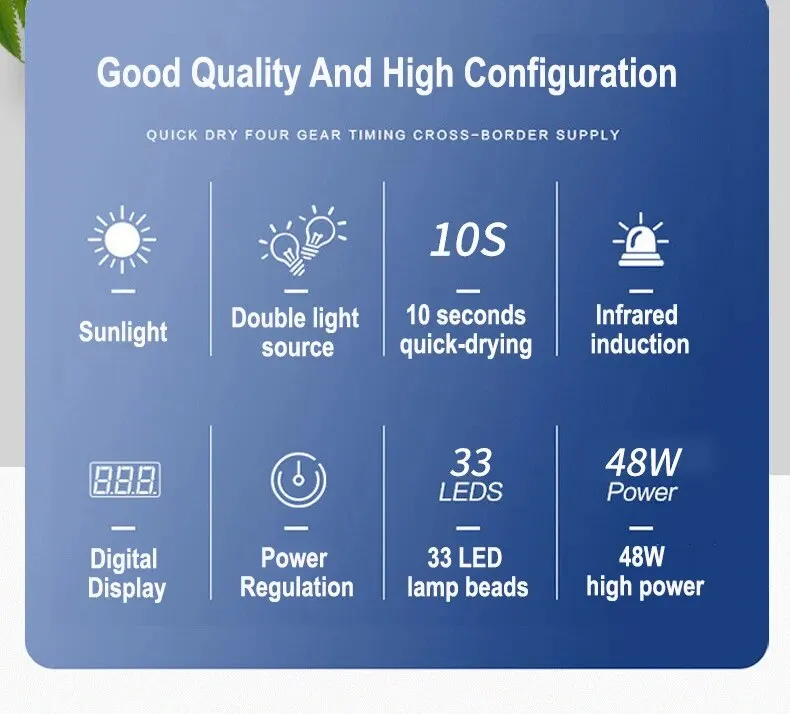 Using 33pcs high quality LEDs, users can dry nails faster.
