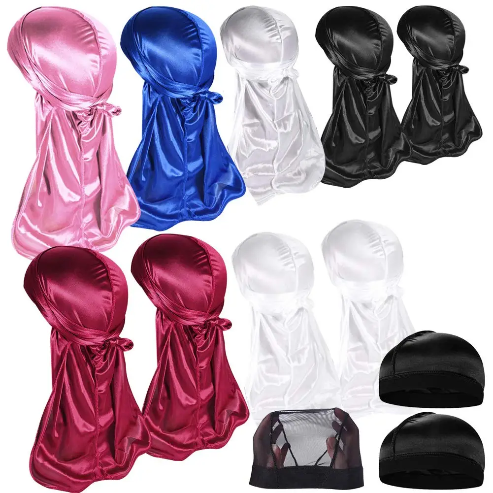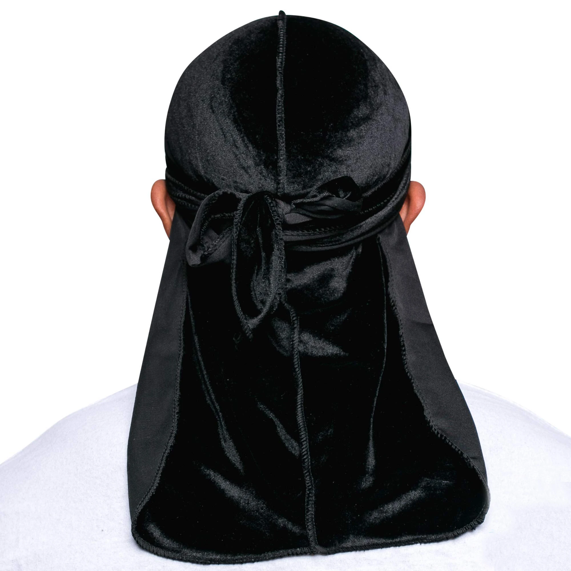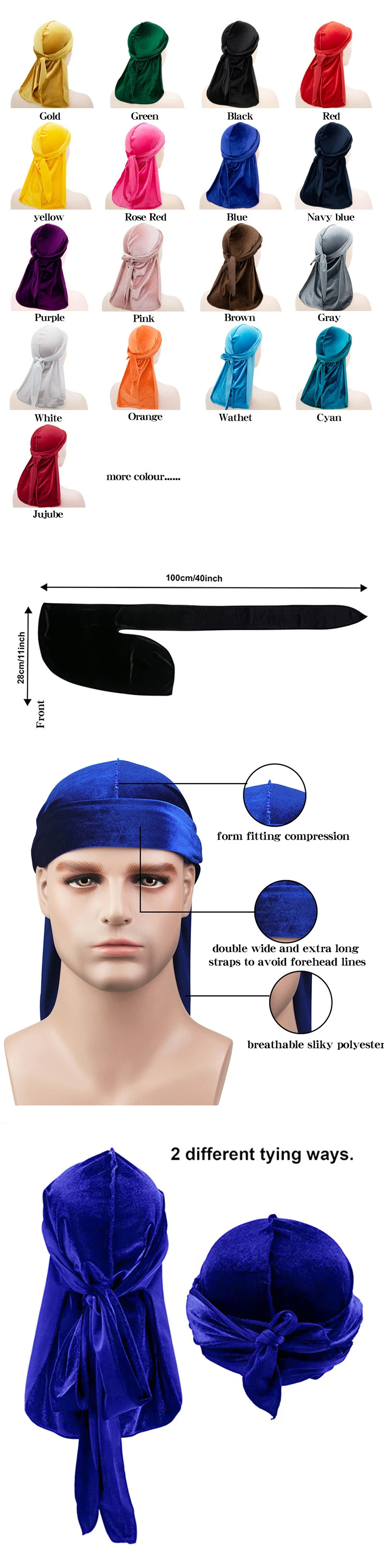 Superior Velvet Fabric Durag Hair Accessories Bonnet Satin Multiple Colors Turban Cap Headwear Hats Long Straps Beanie For Adult