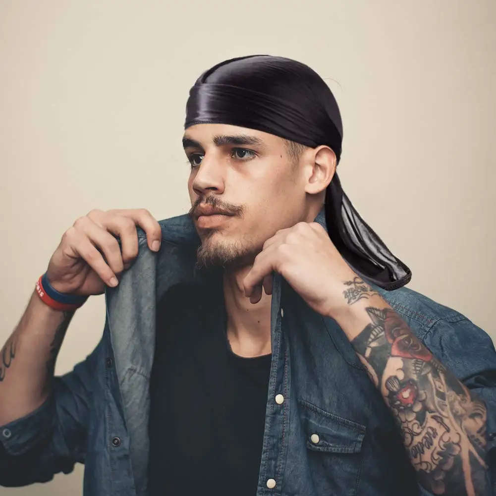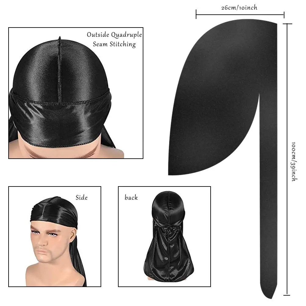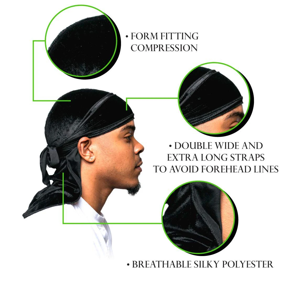 Superior Velvet Fabric Durag Hair Accessories Bonnet Satin Multiple Colors Turban Cap Headwear Hats Long Straps Beanie For Adult