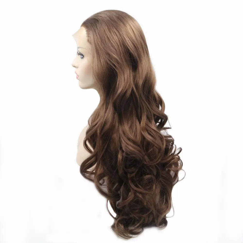 Sylvia 6#Color Brown Synthetic Lace Front Wig Body Wave Wigs Heat Resistant Fiber Long Hair For Women