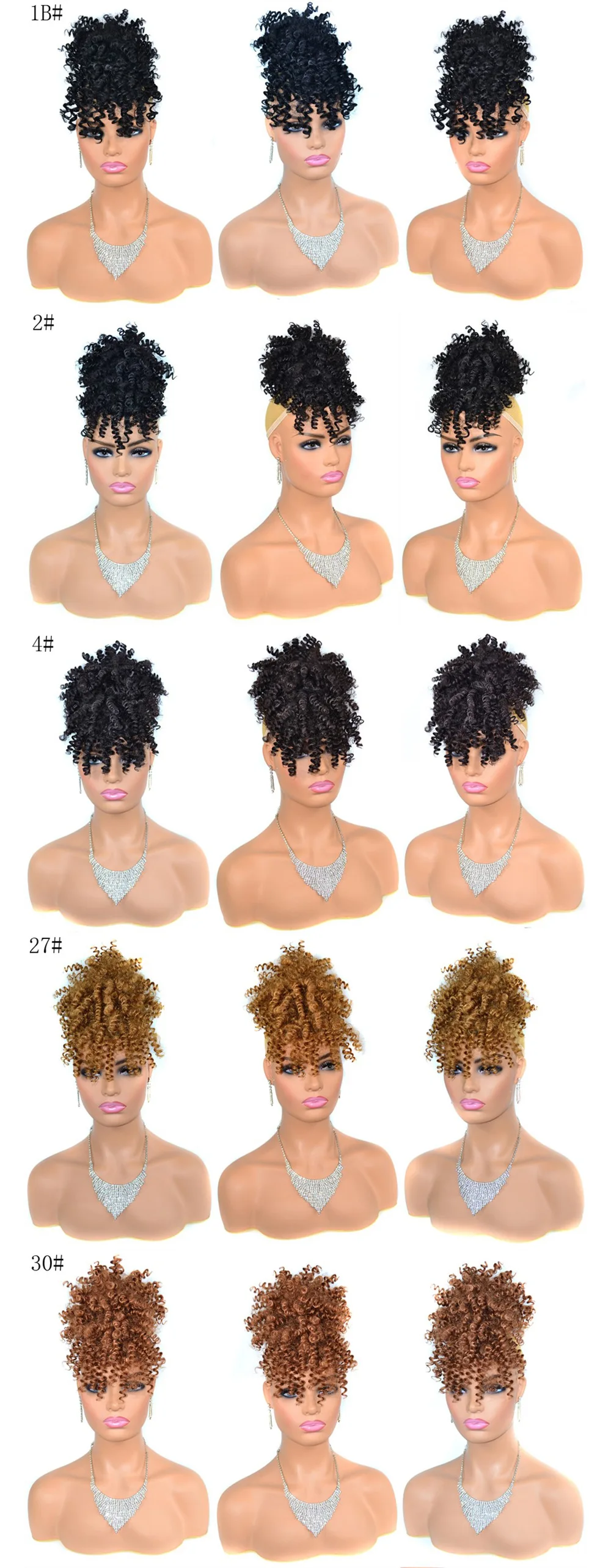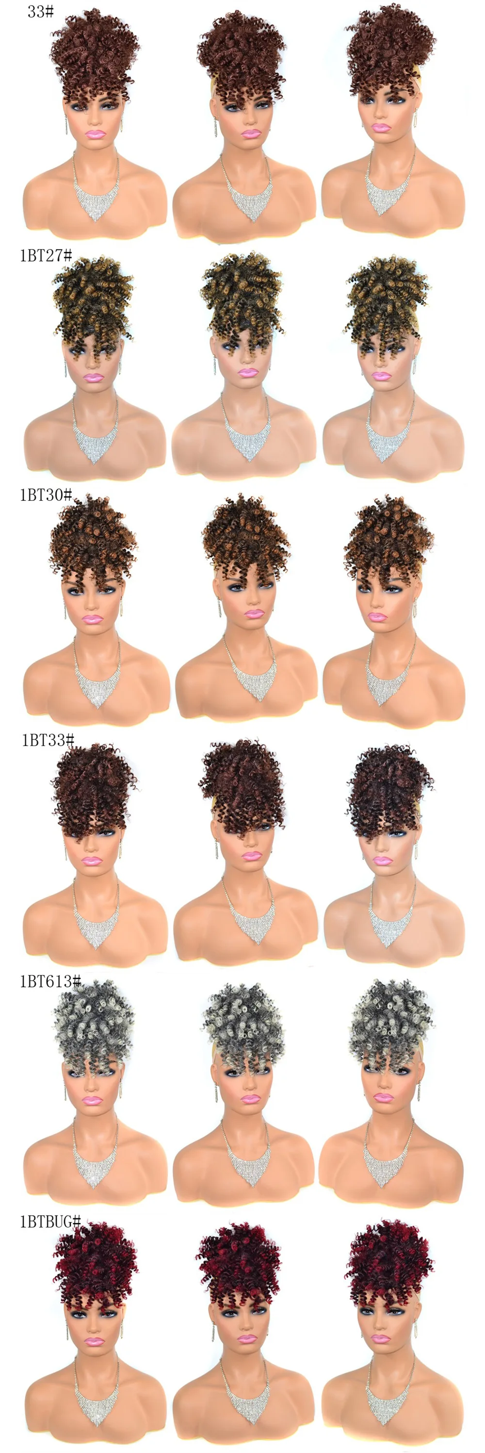 Premium Material: The Afro High Puff Bun with Bangs Are Made by Synthetic Heat Resistant Fiber, It’s Soft, Bouncy, Lightweight, Easy to Set and Keep Texture Well.