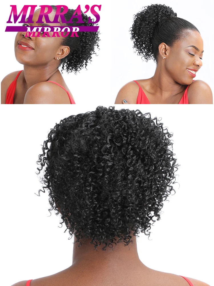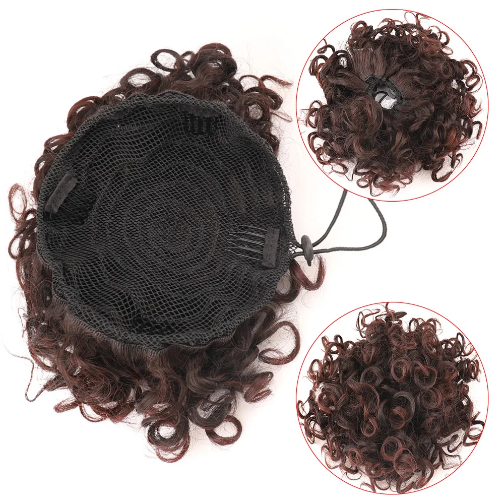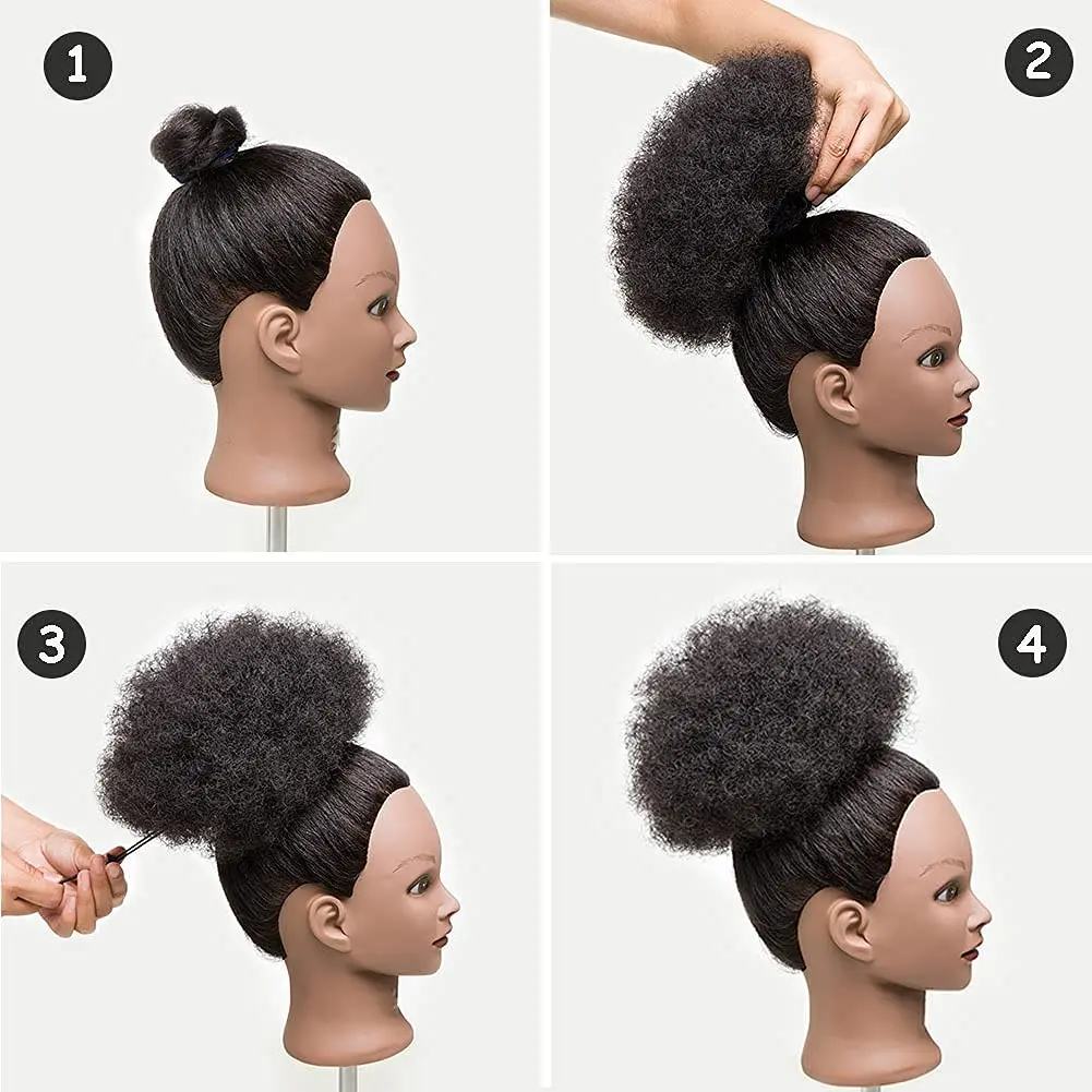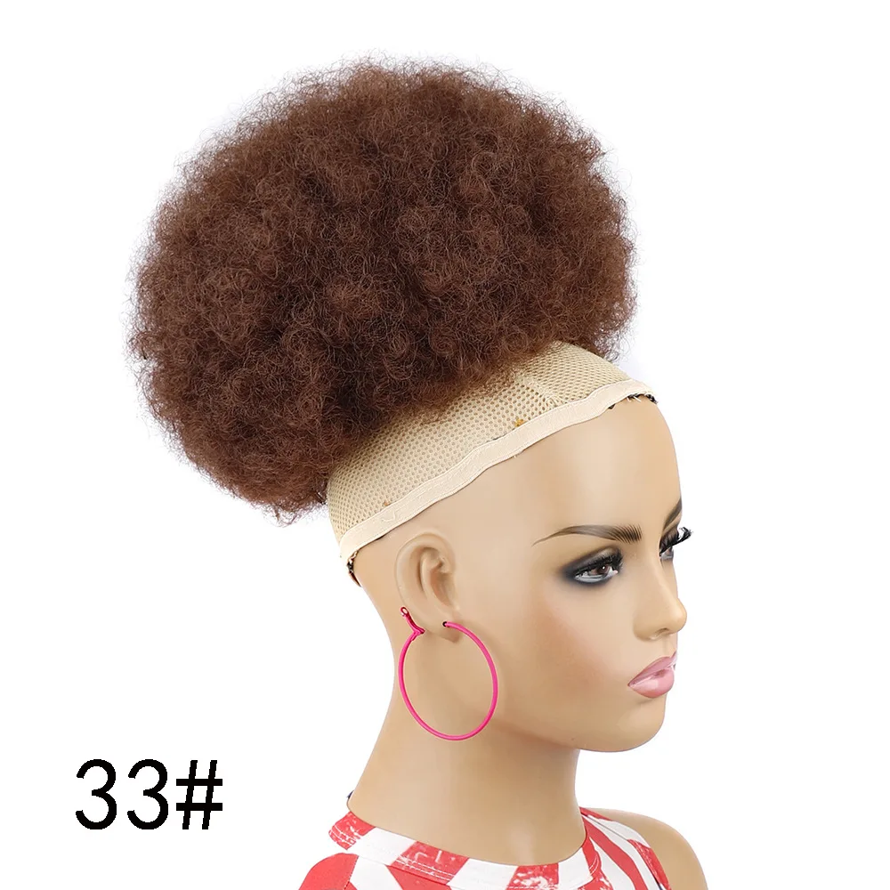Synthetic Afro Puff Drawstring Ponytail Hair Bun 10 Inch Short Afro Kinkys Curly Afro Bun Extension Hairpieces Large Size