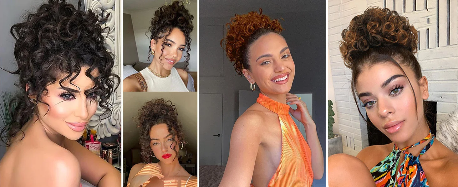 [Make your day better] The pre-styled curly bun save you from long styling time and is the go-to hairstyle for the beautiful you to take on those days when you want to still look good but don't have as much time to give to your hair