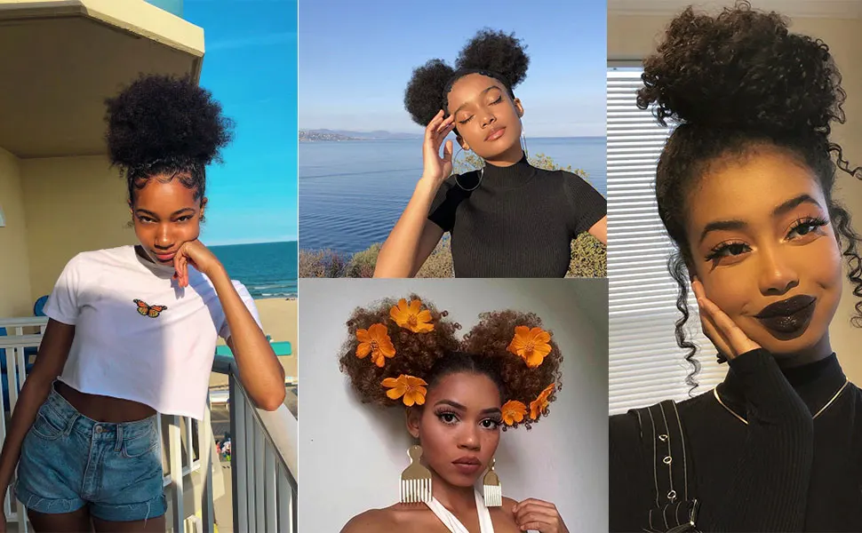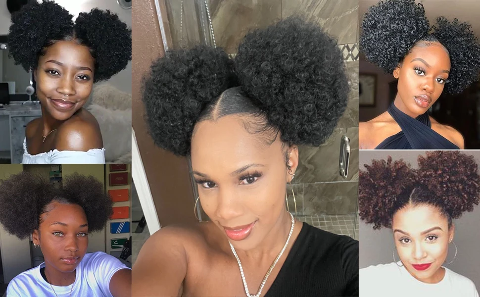 Fashion Style: Short Afro Puff Ponytail Drawstring Looks Completely Natural without Shining in the Sun, Very Suiteable for Your Natural Hair, Making You More Beautiful and Younger.