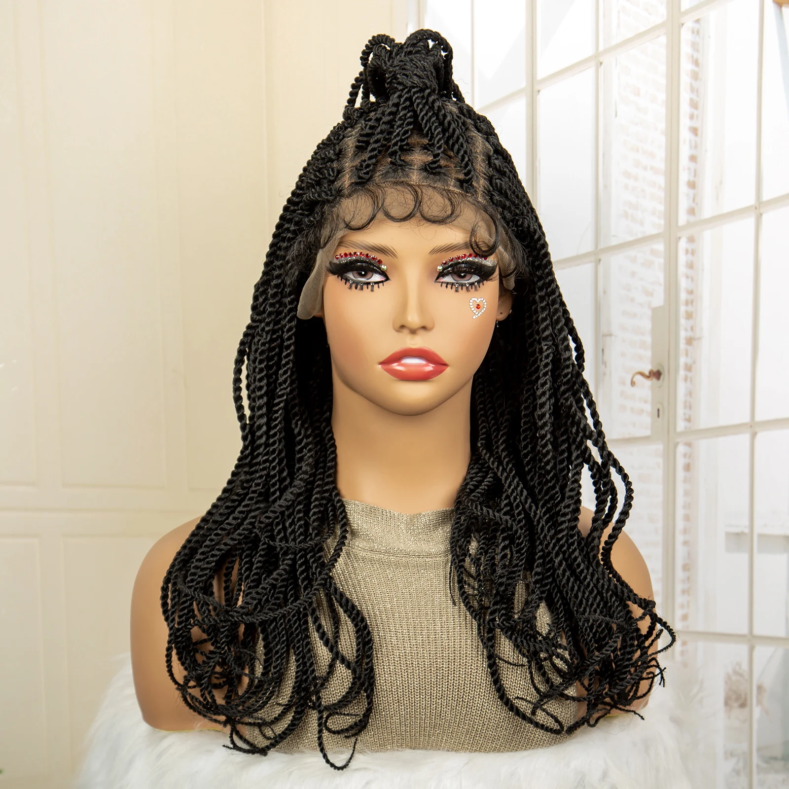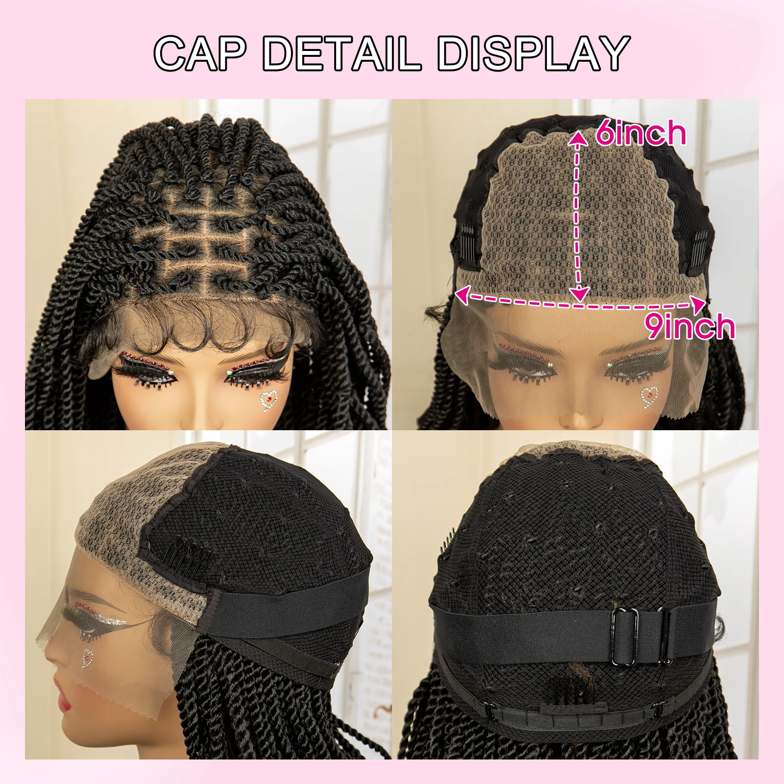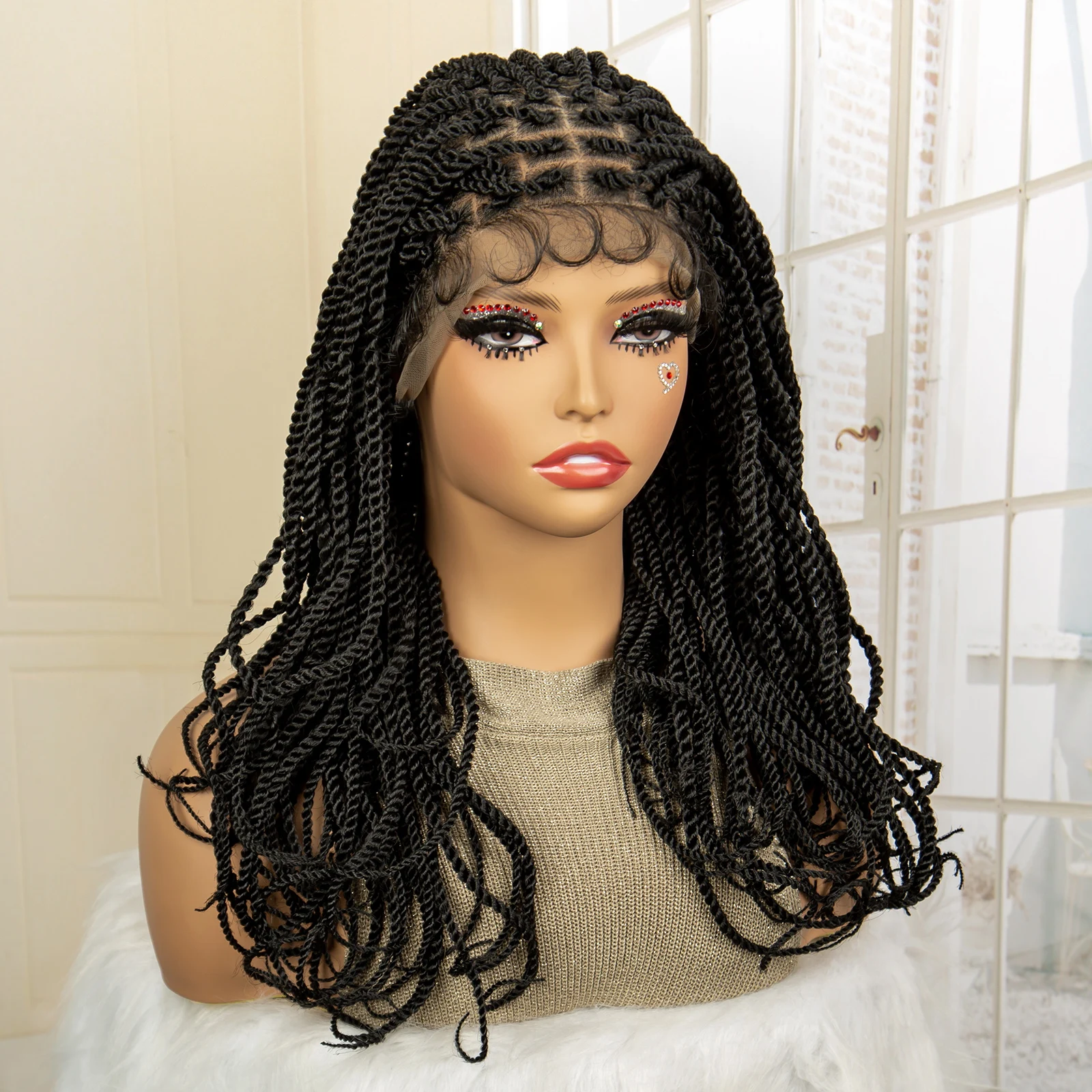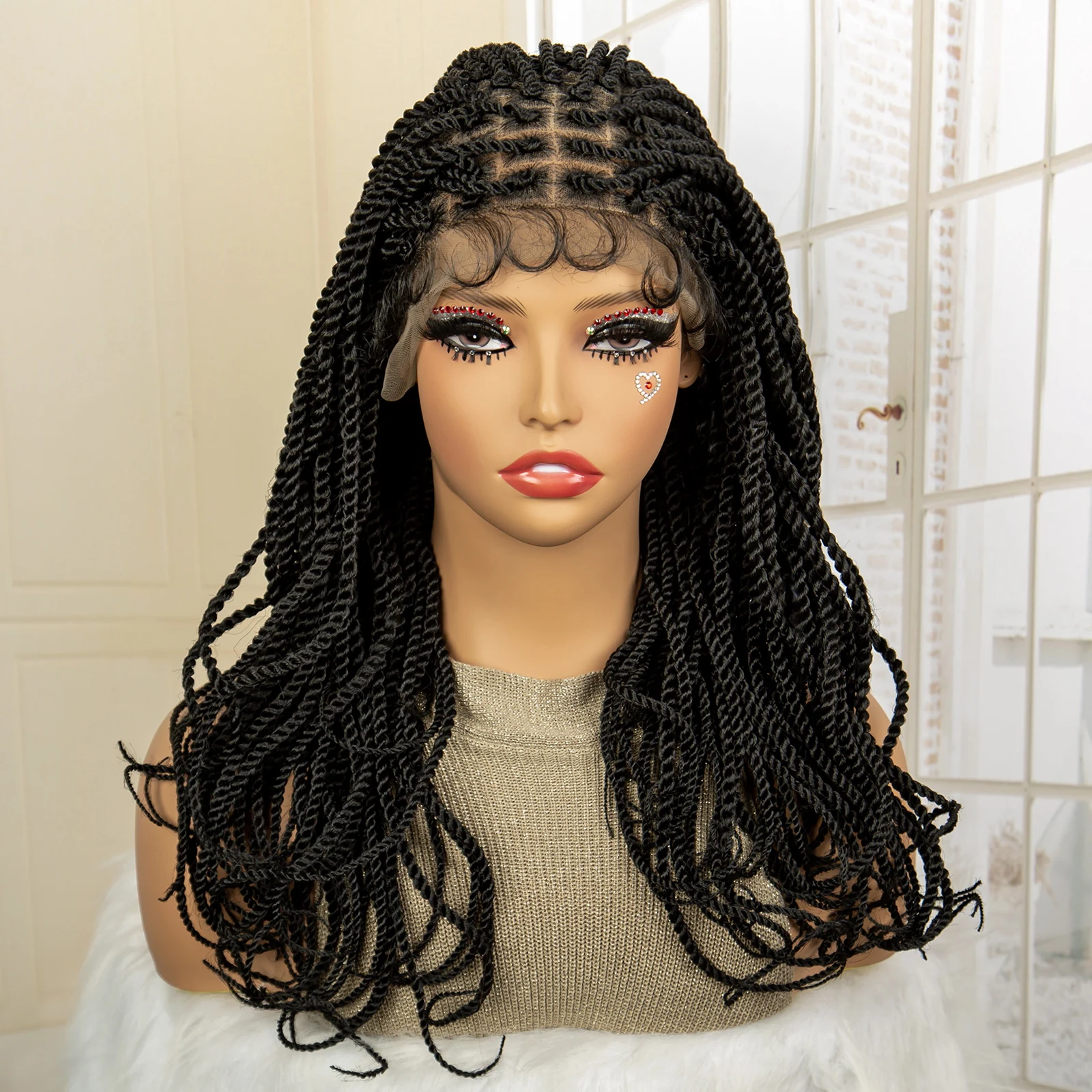 Synthetic Twist Braided Wigs for Black Women Wave Knotless Box Braids Wig 20 Inches Lace Frontal Lightweight Braiding Wigs