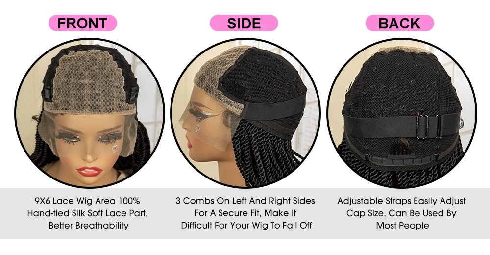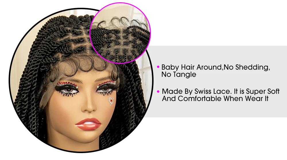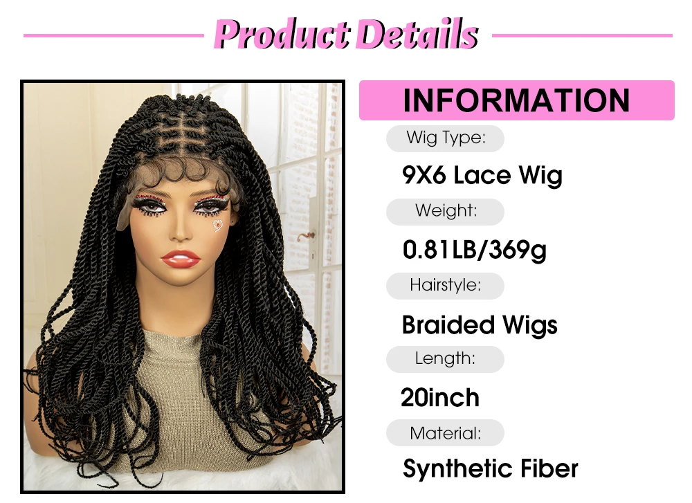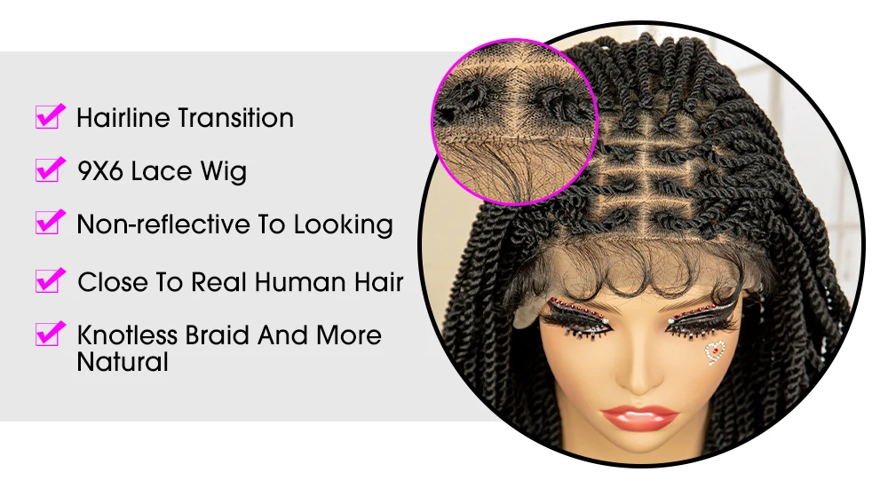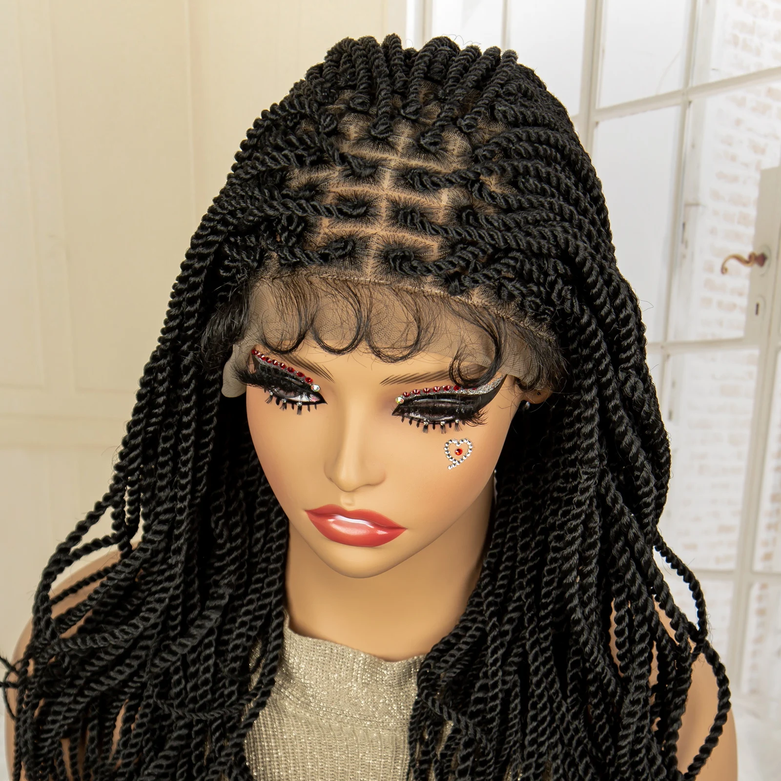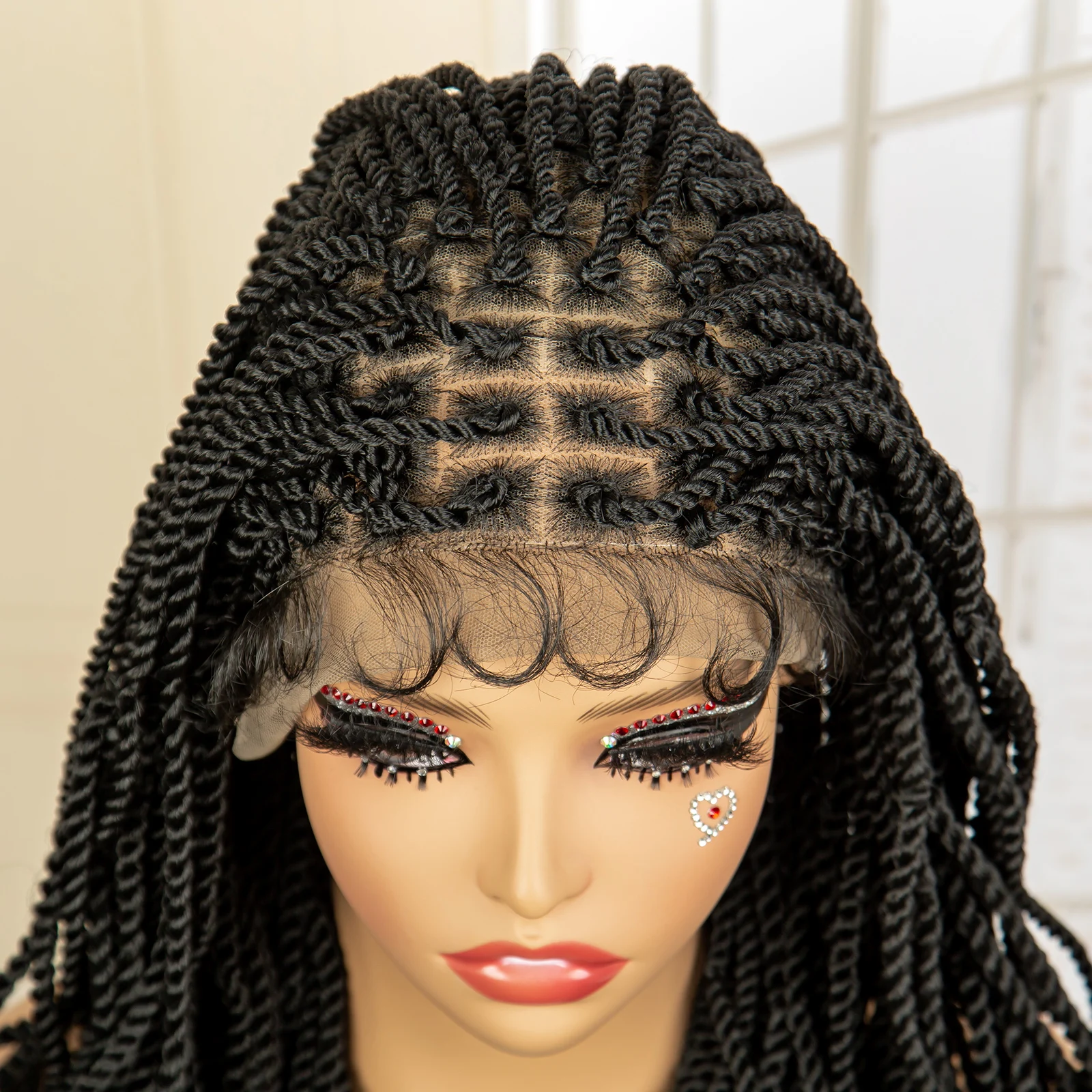 Synthetic Twist Braided Wigs for Black Women Wave Knotless Box Braids Wig 20 Inches Lace Frontal Lightweight Braiding Wigs