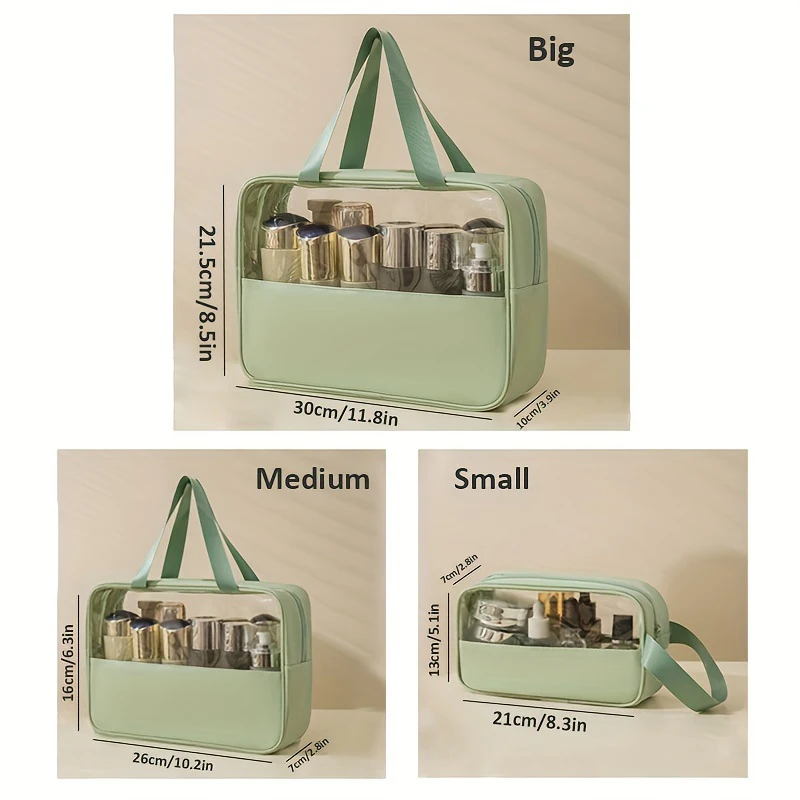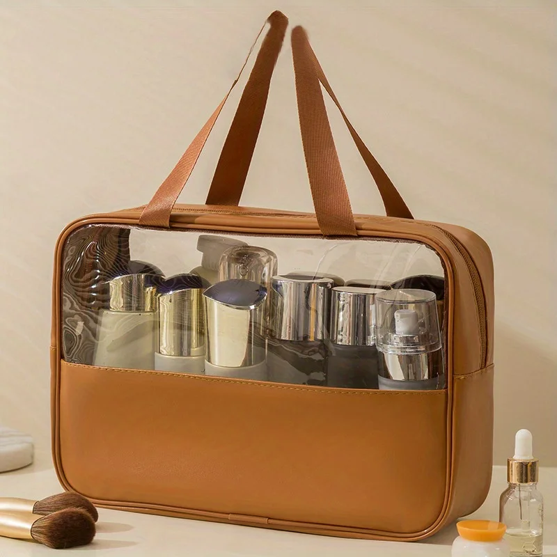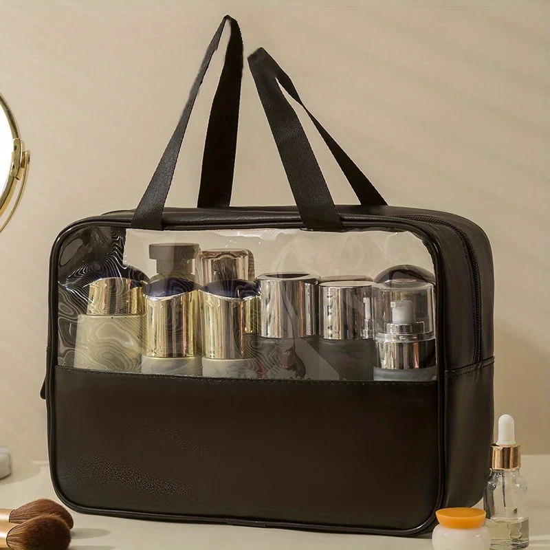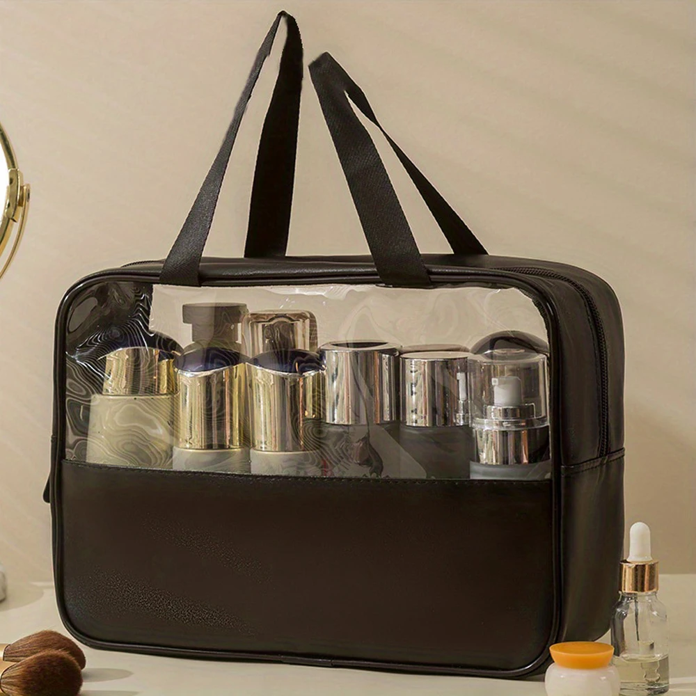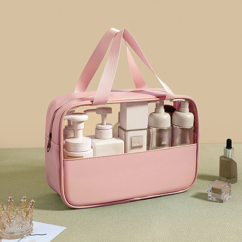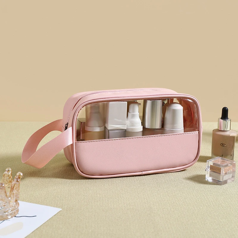 Transparente Makeup Bag Portátil PU Waterproof Wash Bag Saco de armazenamento de grande capacidade PVC Spliced Makeup Bag