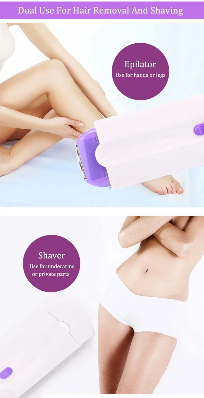 * 100% brand new and high quality * It's ideal for women of all ages, get those soft smooth legs you always wanted, get rid of facial hair without painful plucking, making laser treatment appointments or waxing * Safe and gentle on the most sensitive skin * No more painful or smelly hair removal methods * The remover will activate and remove hair as long as the head is against your skin * Use anywhere there's unwanted hair-safe on all skin types and colors