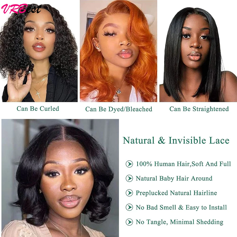 Vrbest Body Wave Bob Wig Wear And Go Glueless Human Hair Wigs Bob Wigs For Women Ready To Wear 4x4 Lace Closure Wig Human Hair