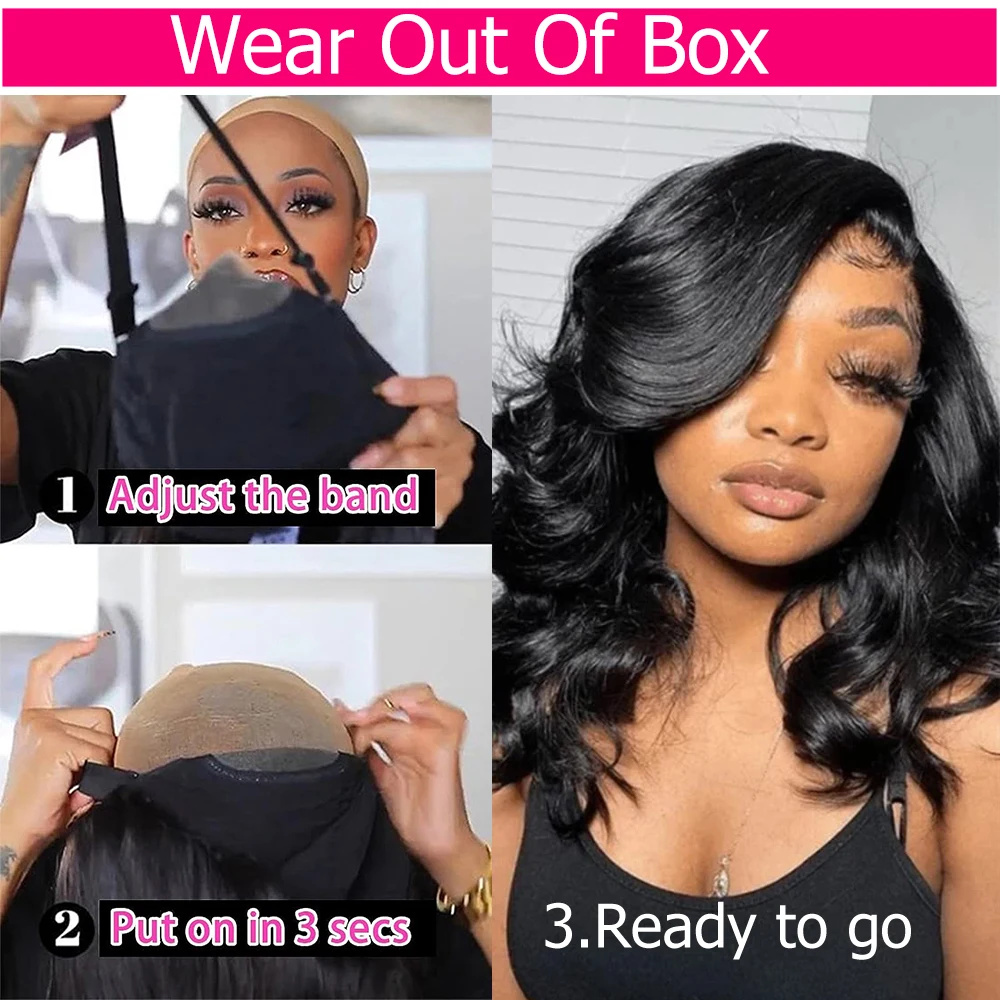 Hair Texture:Body Wave Bob Wig; Natural Black Color; Density, Full & Thick.