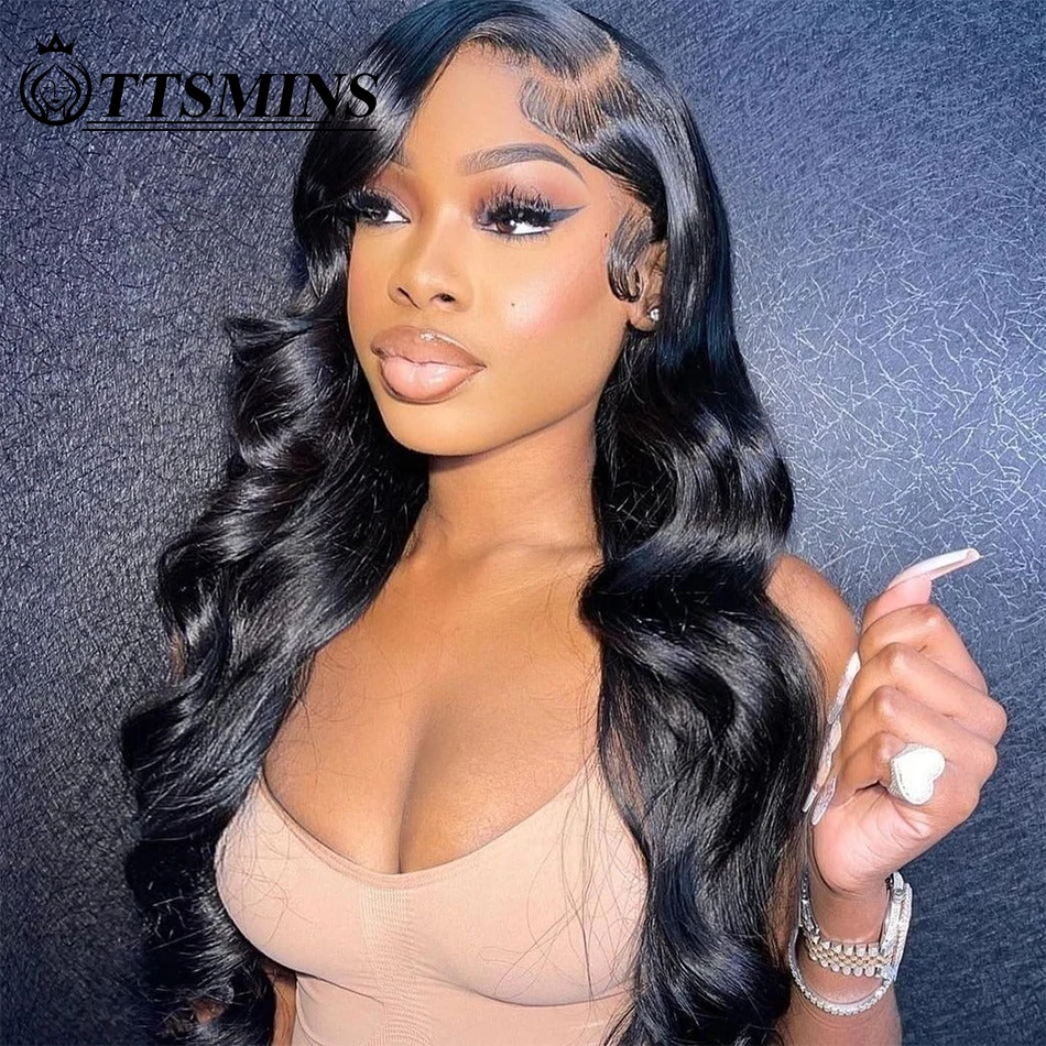 Wet And Wavy Body Wave Lace Wigs For Women Human Hair Lace Frontal Wig Natural Black Hair Pre plucked Long 34Inches Glueless Wig