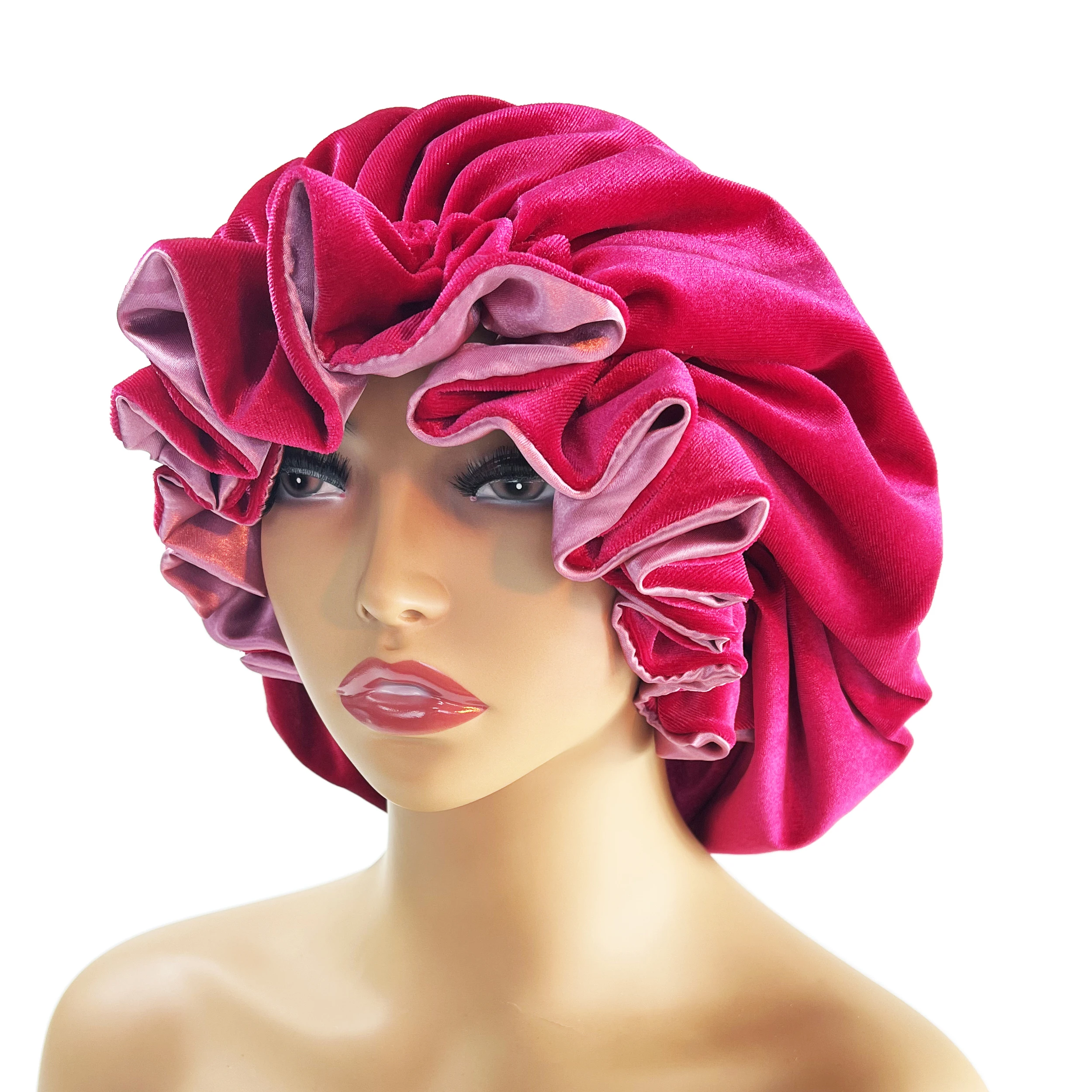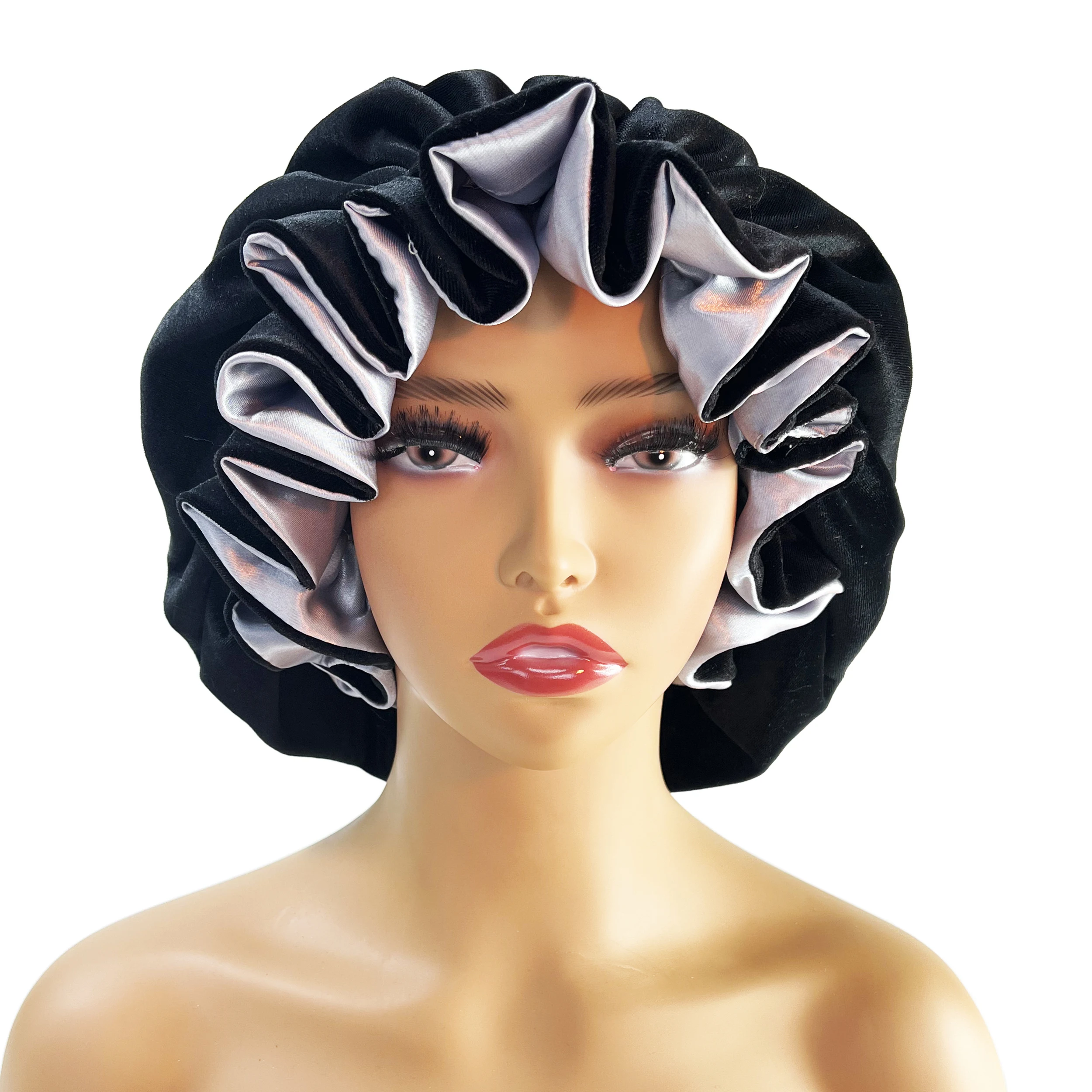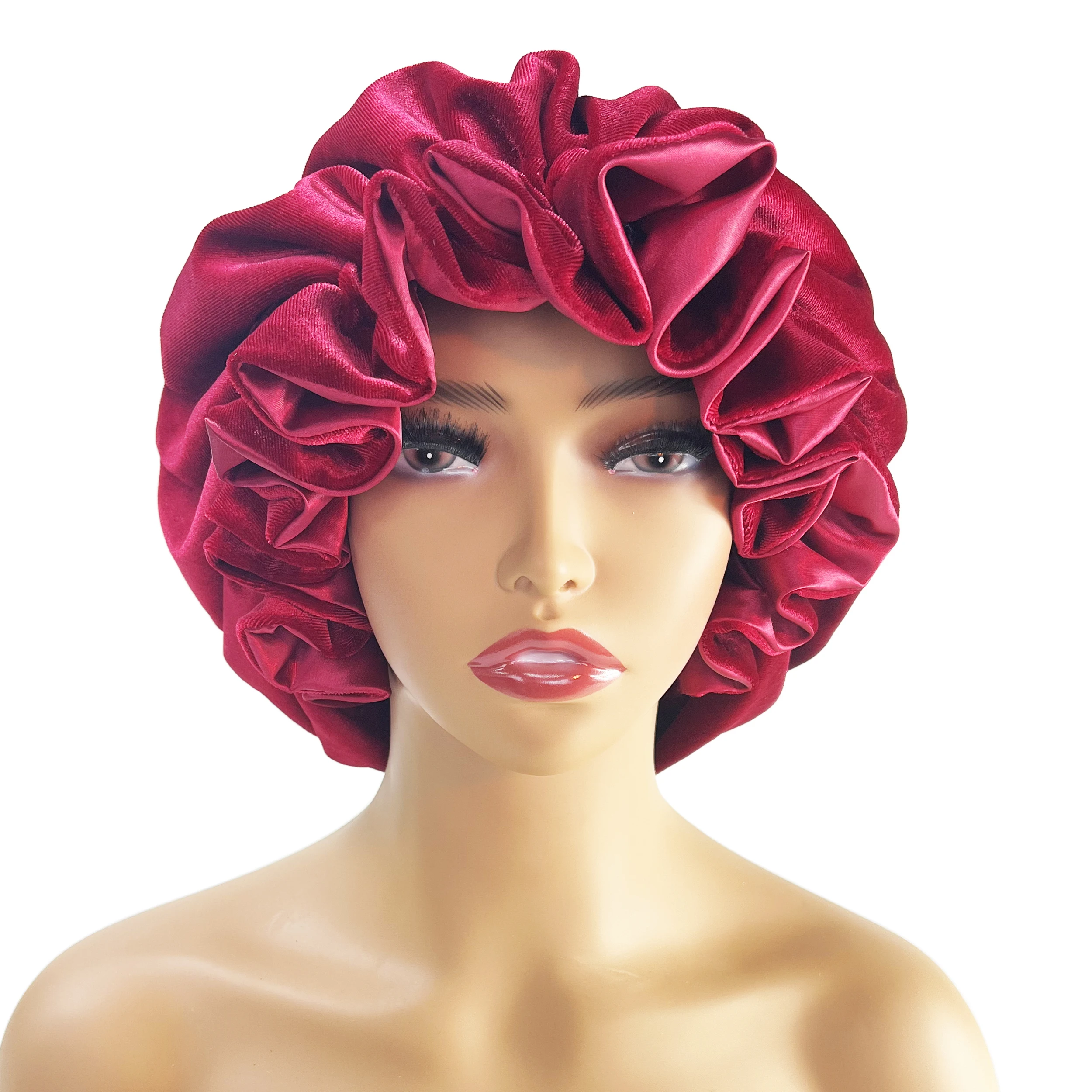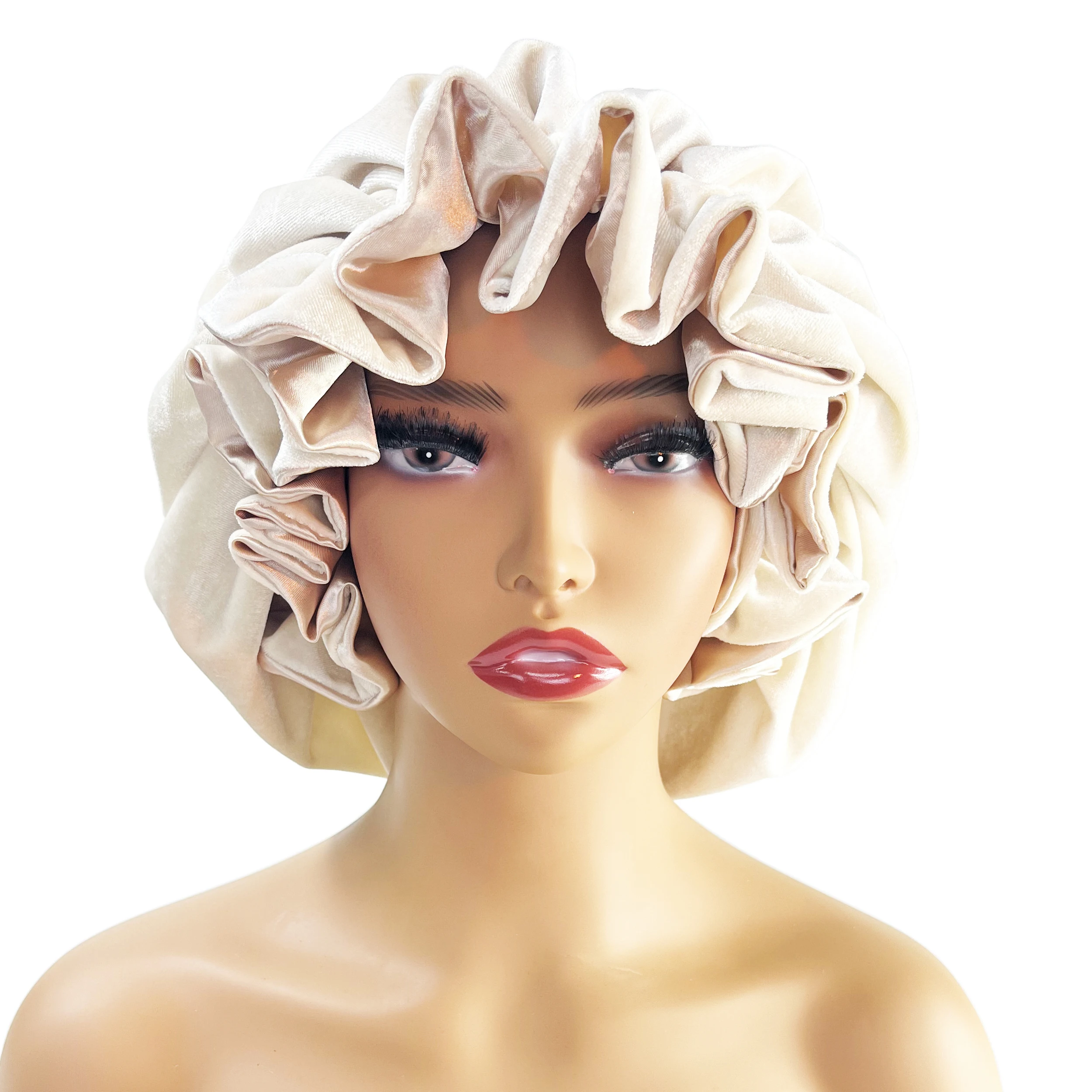 Winter Velvet Bonnet's Double Layer Thickening Velvet+Satin Sleep Cap Warm Nightcap Big Bonnet Sleeping Cap