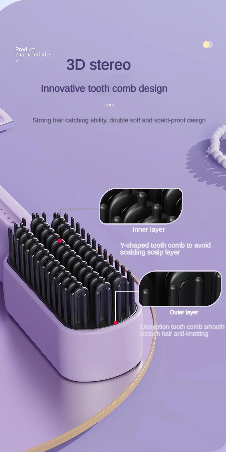 Wireless Hair Straighteners 3200mAh Mini Hot Comb Dryer and Straightening Brush Hair Styling Appliances Hot Comb Straightener