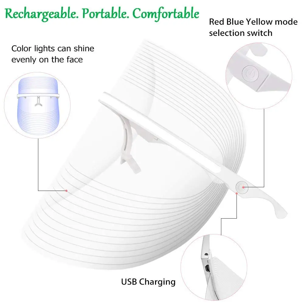 Wireless Rechargeable 7 Color LED Treatment Skin Tightening Facial Massager Skin Care LED Mask Women Beauty Mask Absorption