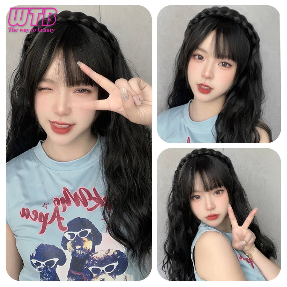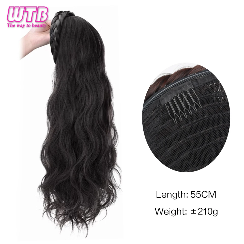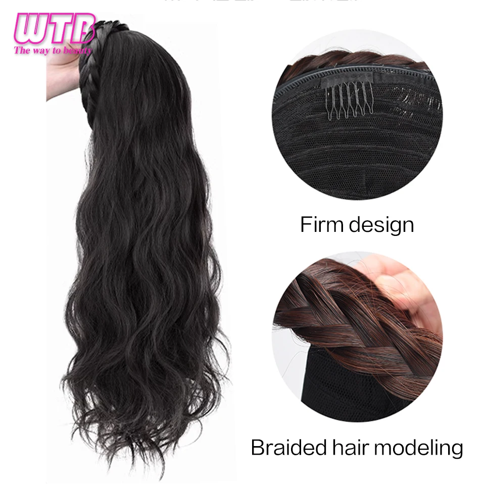 WTB Synthetic Long Wavy Headband Wig Black Brown Women's With Twist Braid Hairband Accessories Natural Half Wig For Women