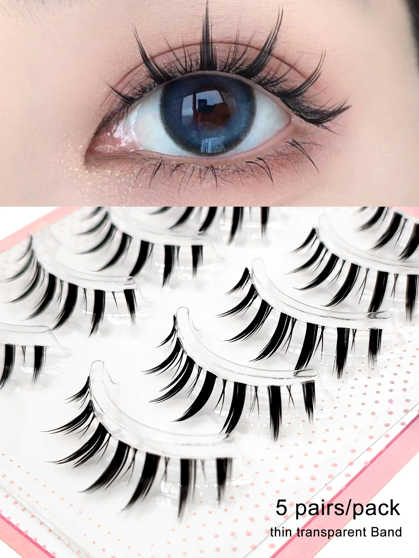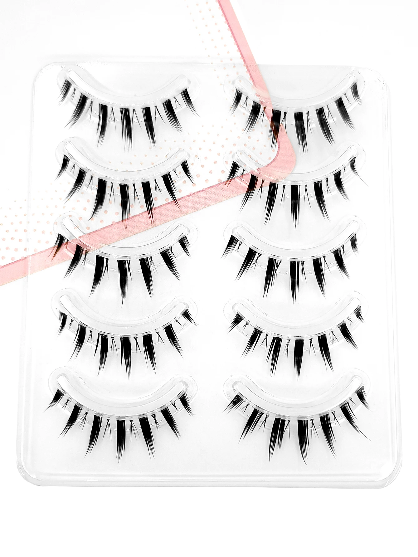 Yelix 5 Pairs False Eyelashes Japanese Style Makeup Thick Eyelash Extension Cosplay Makeup Lashes Manga Fake Eye Lashes