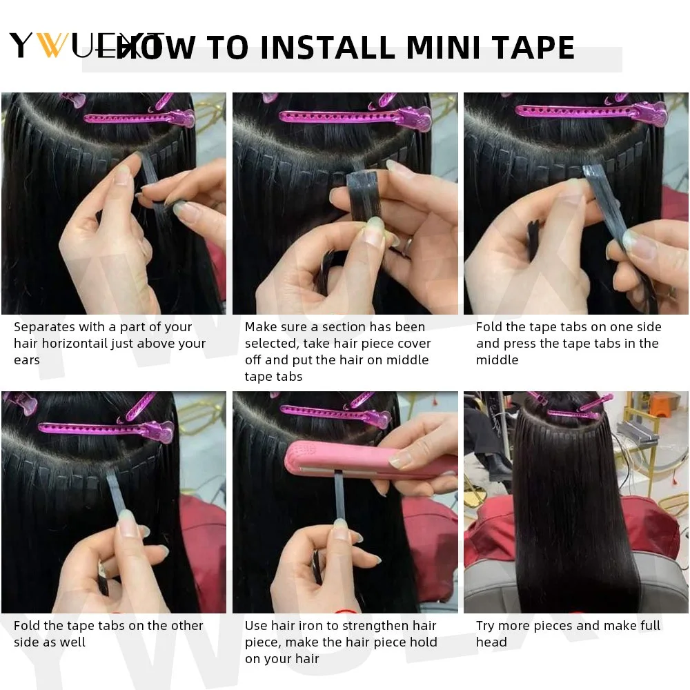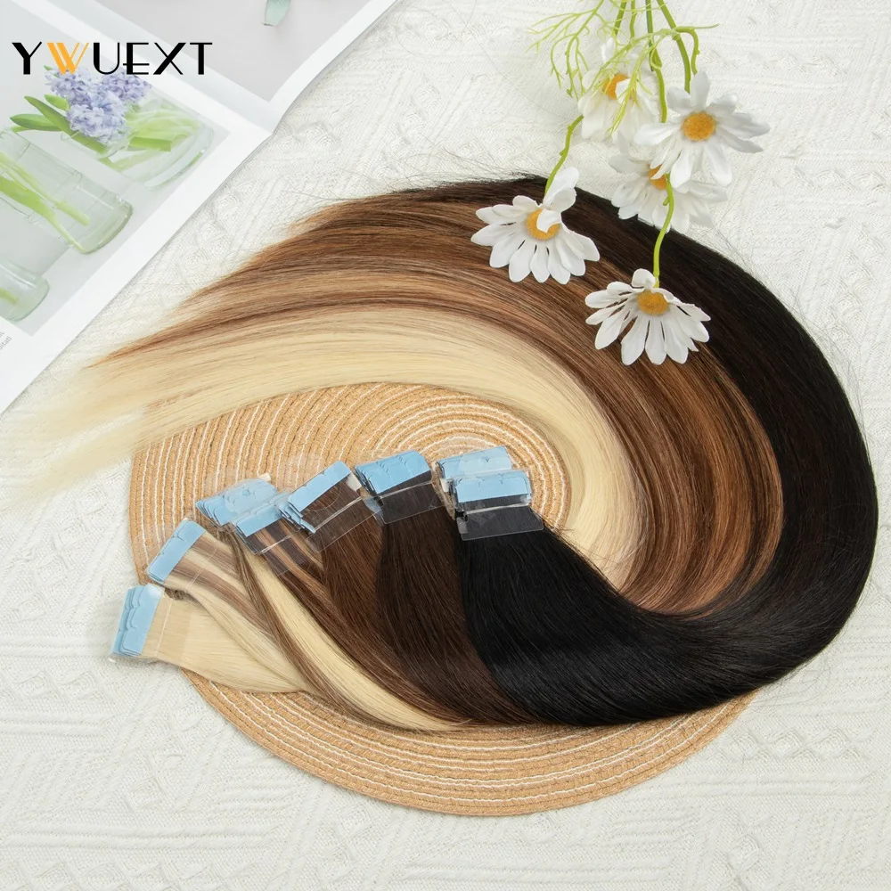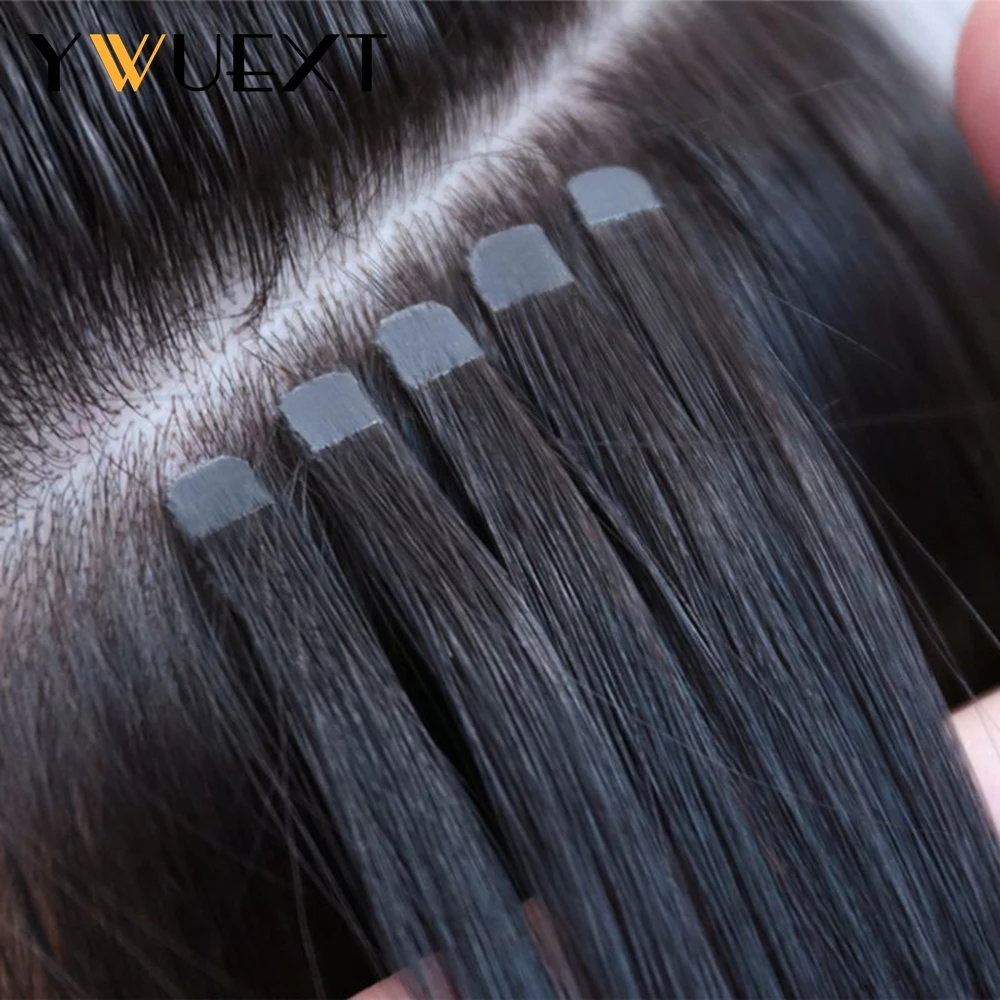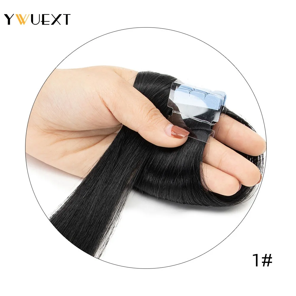YWUEXT Mini Tape in Human Hair Extensions Straight Natural Black 1B# Machine Made Remy Hair 10pcs/pack Invisible Tape Hair