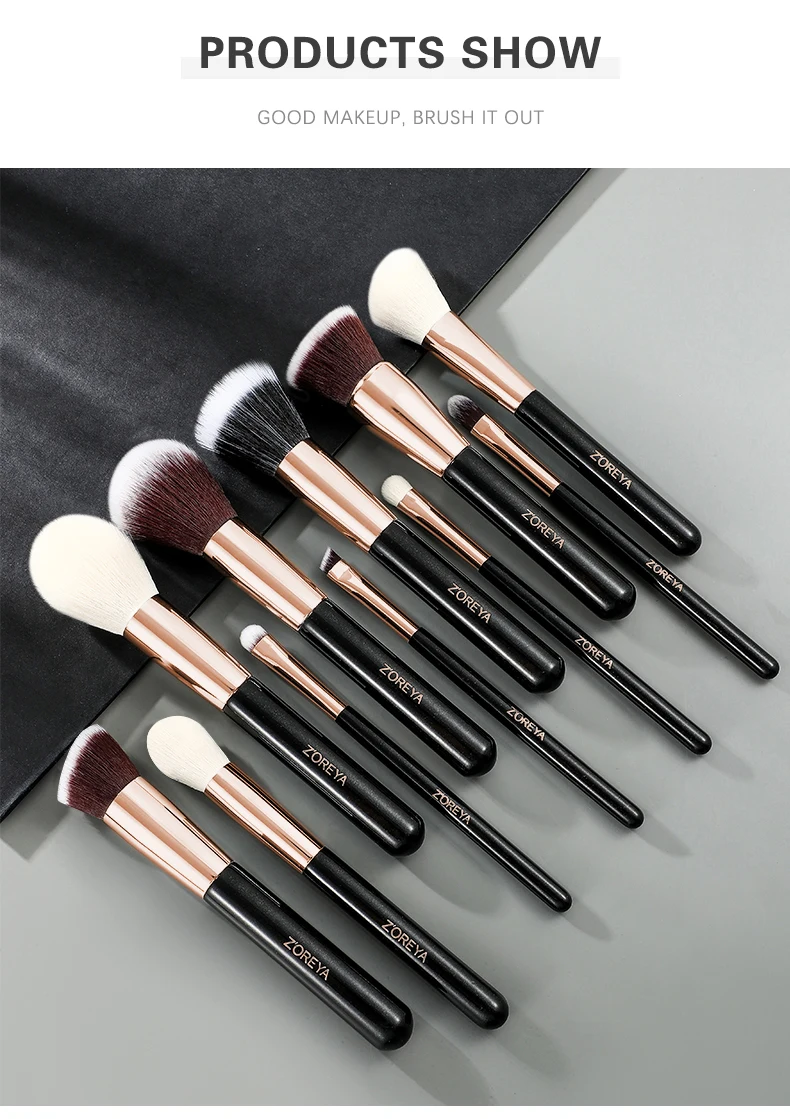 ZOREYA Black Makeup Brushes Set Natural Hair Brushes Foundation Powder Eyebrow Contour Eyeshadow Make Up Brushes maquiage
